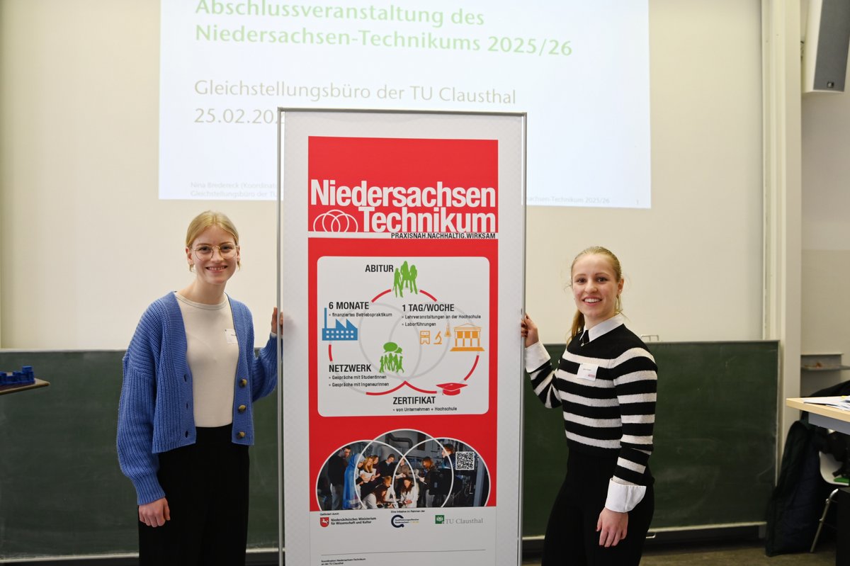 Wie gut es ihnen gefallen hat, berichtete die beiden auch auf der Abschlussveranstaltung des Niedersachsen-Technikums. Zum Ende des Programms wurden die beiden von ihren Unternehmen und vom Team des Gleichstellungsbüros der TU Clausthal feierlich verabschiedet.